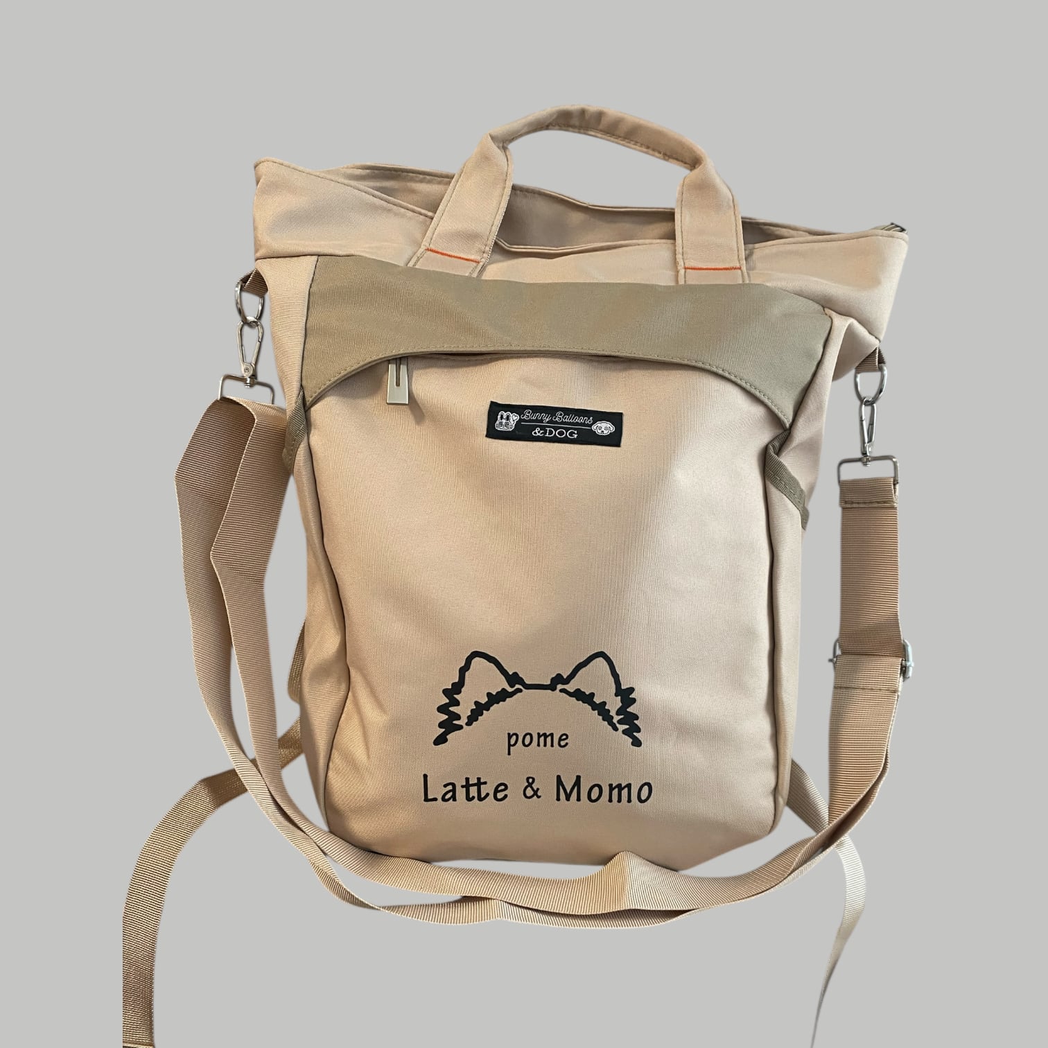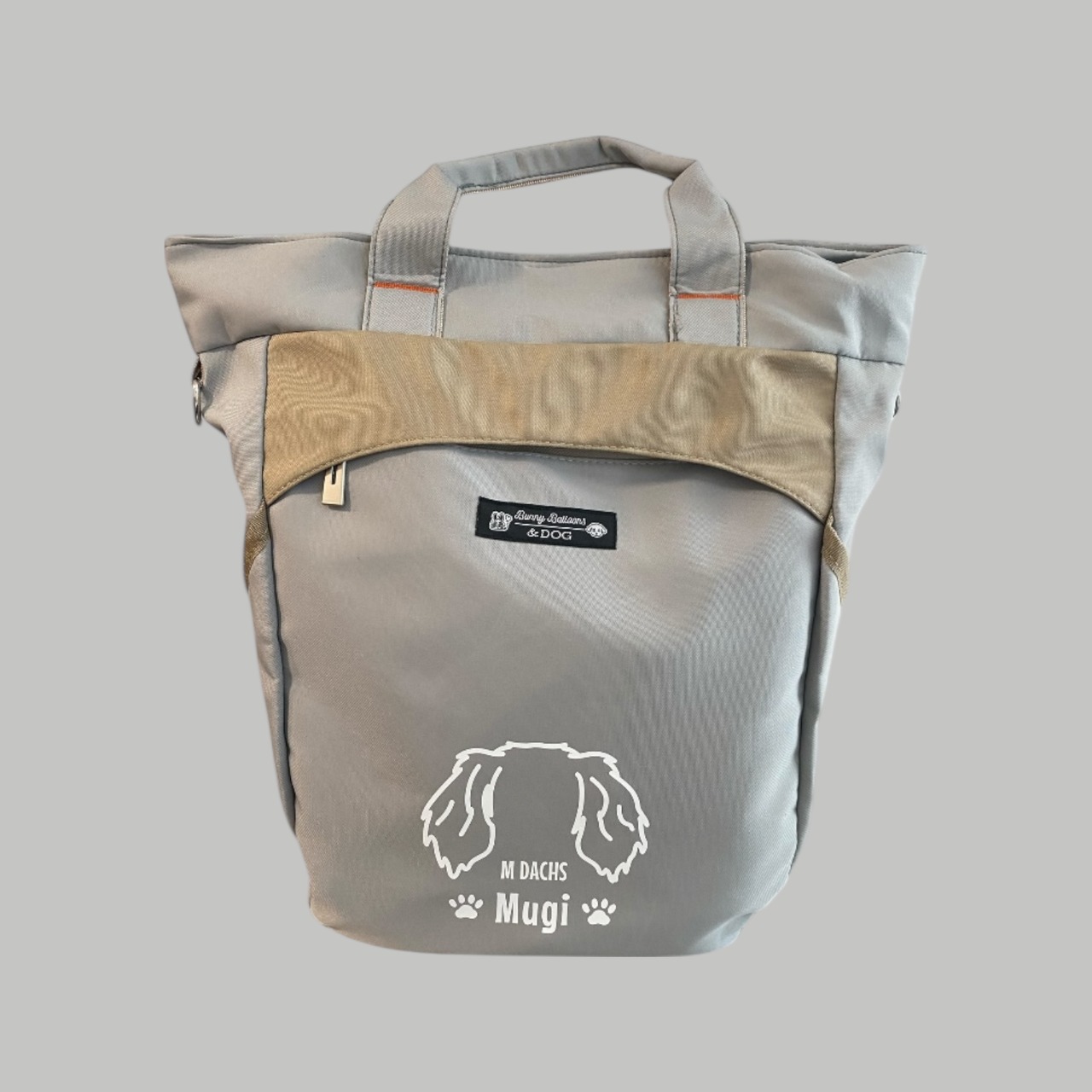 うちの子のお耳のシルエットとお名前を入れて作れる、毎日のお出かけに使いやすいオリジナルバックパックです。