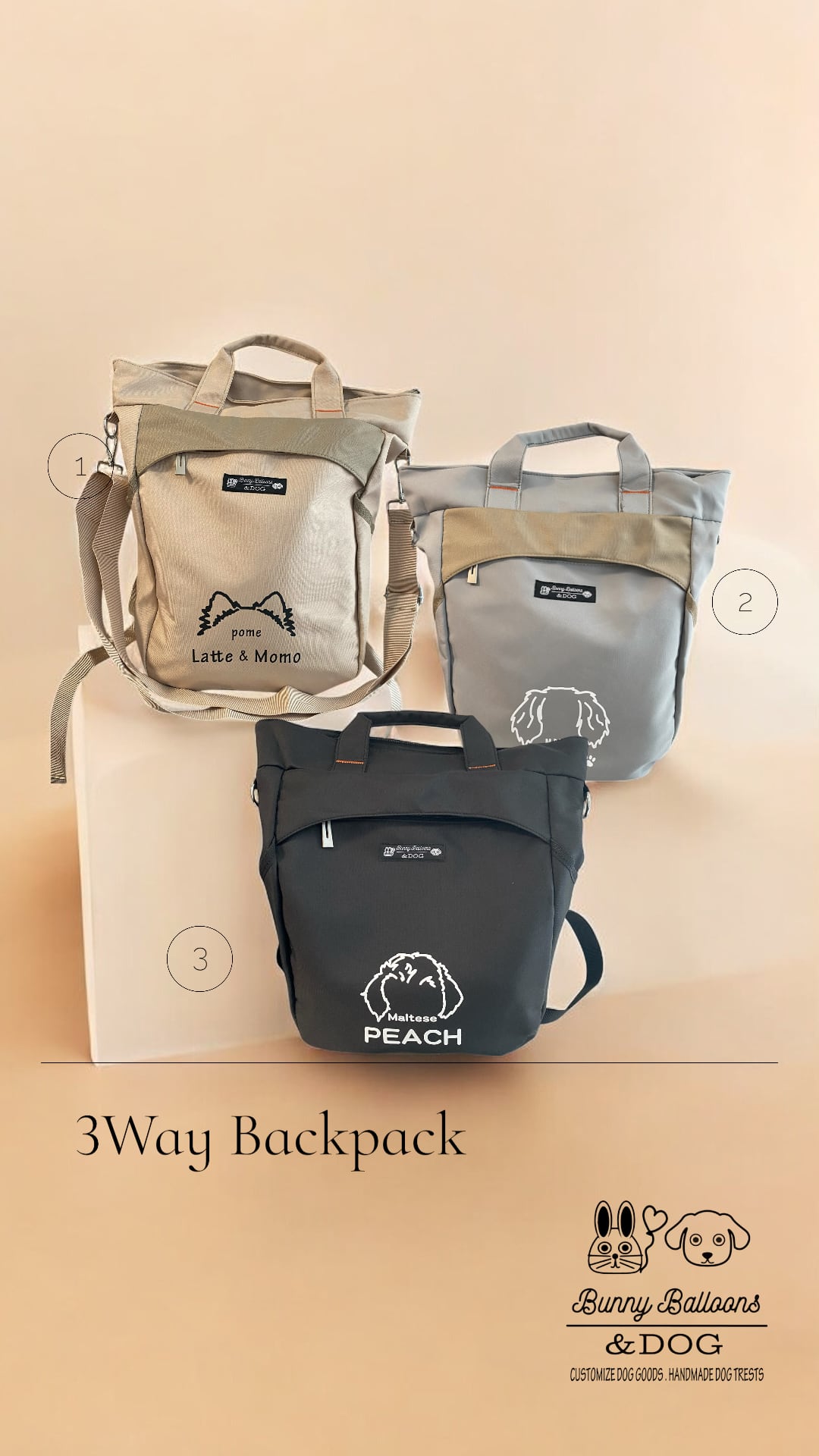 軽量3wayバックパック|うちの子のお耳シリーズ